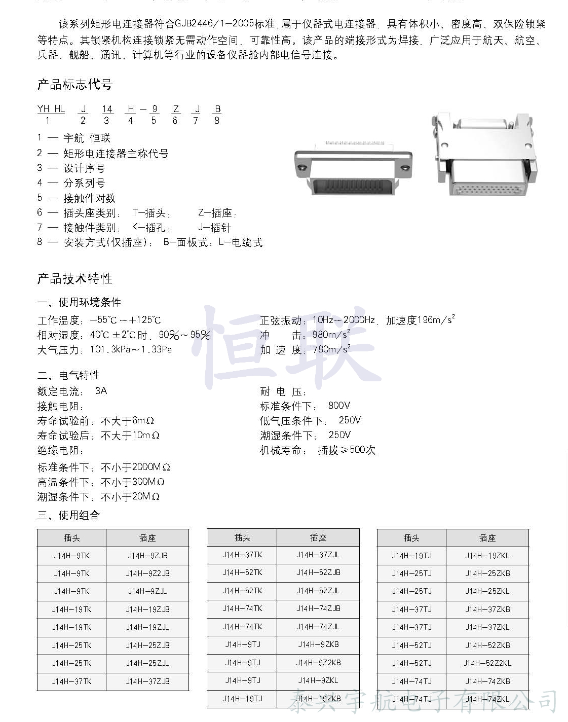 該系列矩形電連接器執(zhí)行Q/HD20037-2007詳細規(guī)范,屬于儀器式電連接器,具有體積小、密度高、雙保險鎖緊等特點,其鎖緊機構連接鎖緊無需動作空間,可靠性高。該產品的端接形式為焊接,廣泛應用于航天、航空、兵器、艦船、通訊、計算機等行業(yè)的設備儀器艙內部電信號連接。
