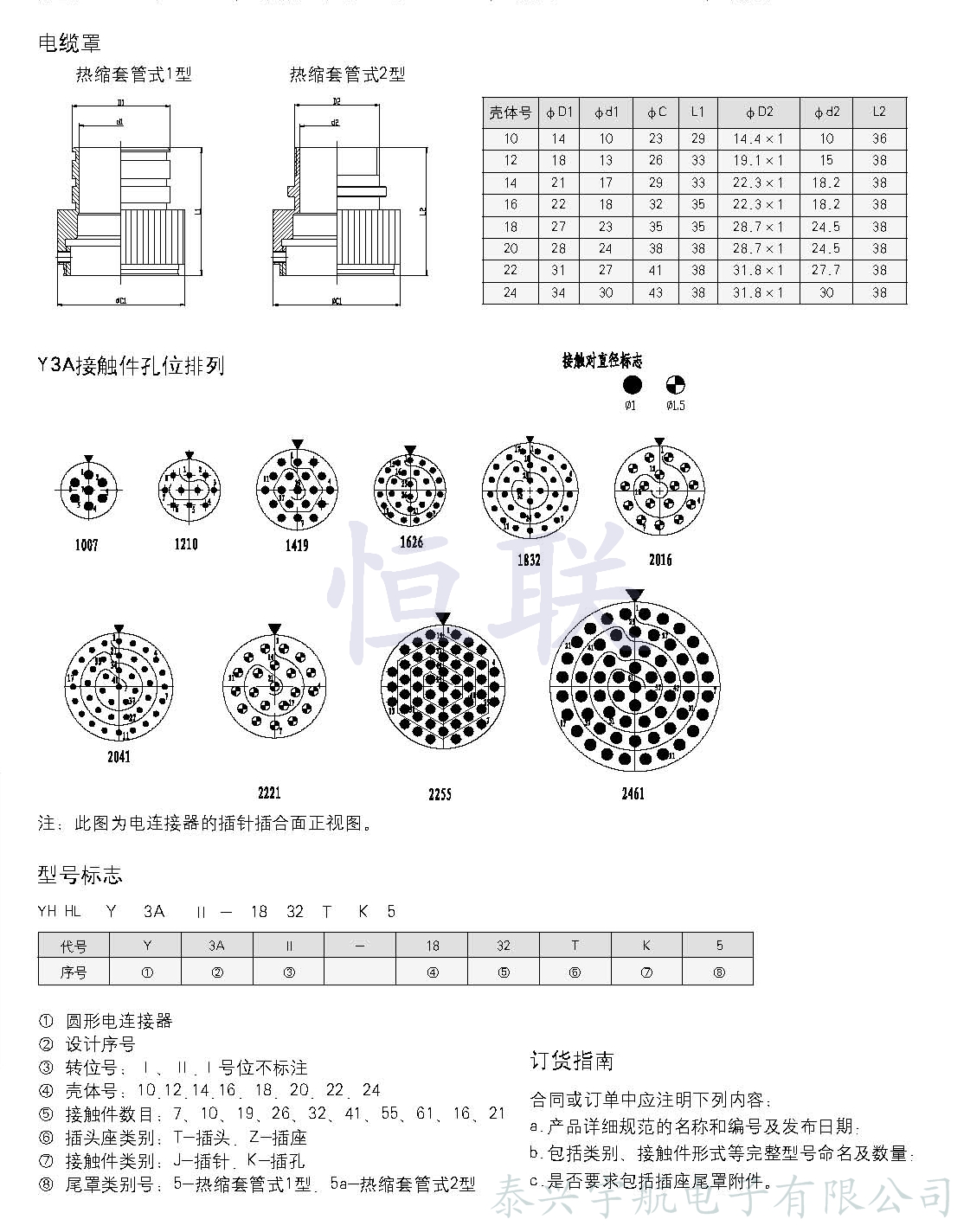 Y3A型直插式圓形電連接器適用于盲插情況下或其它情況下的電訊號可靠連接,鎖緊可靠,使用方便,接觸對焊接,熱縮套管端接