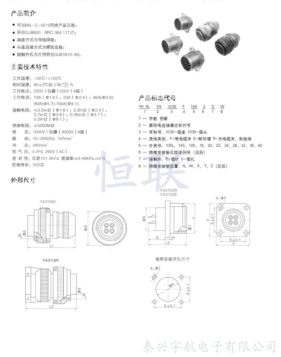 YA系列圓形電連接器