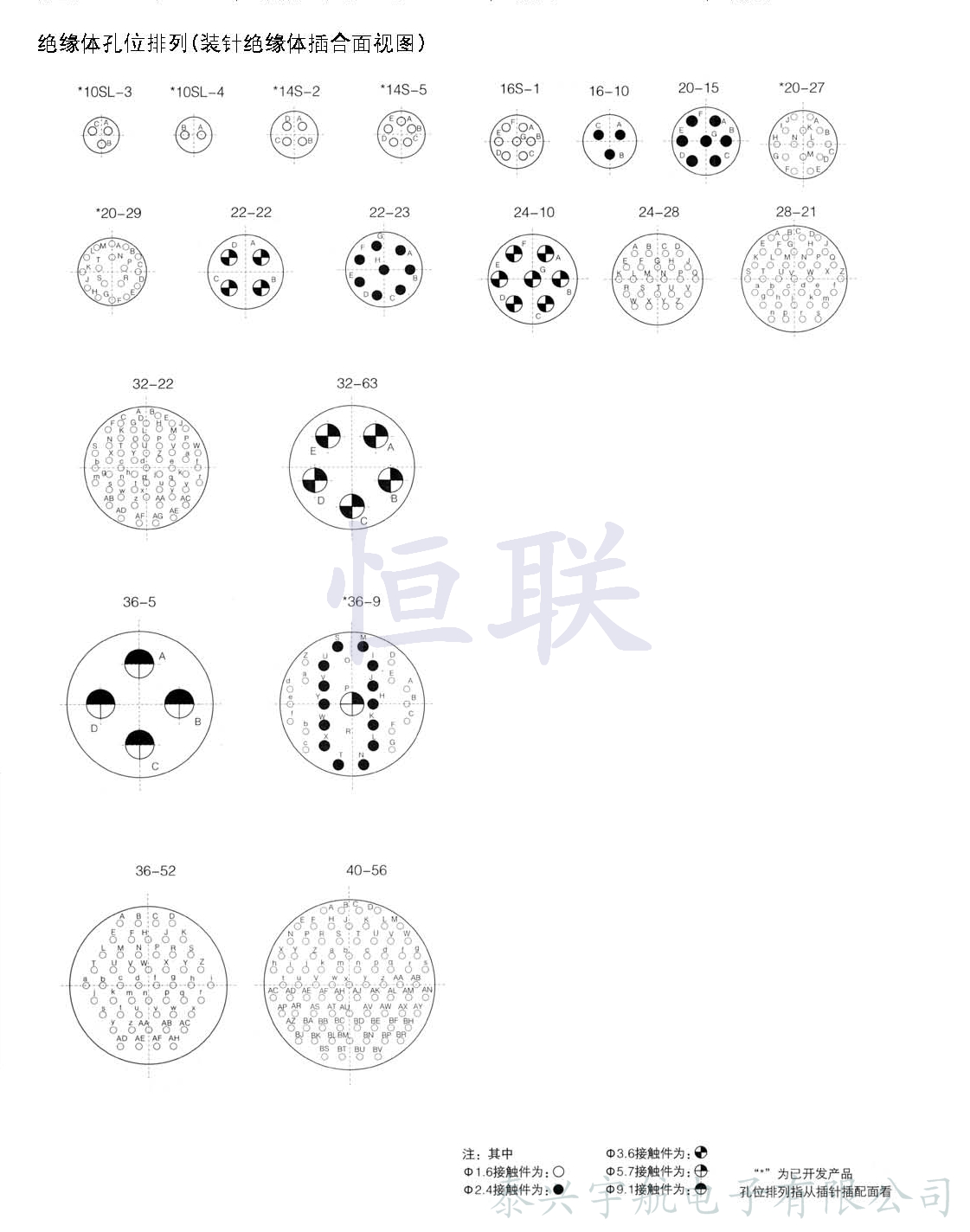 接觸件孔位排列符合GJB1612-93