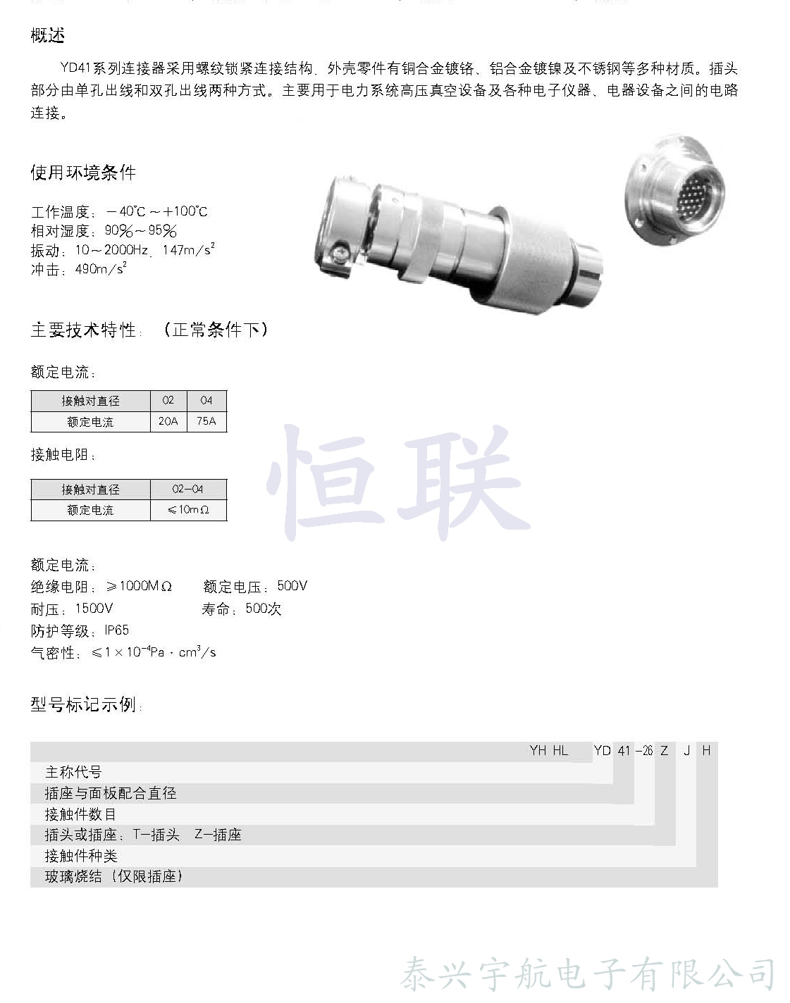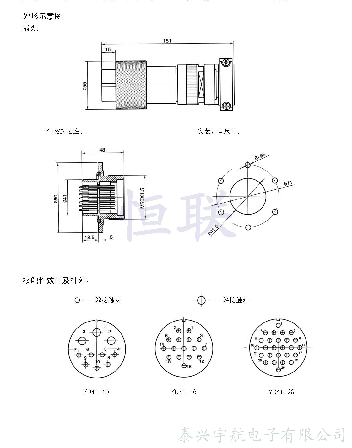 YD41系列電力氣密封圓形電連接器