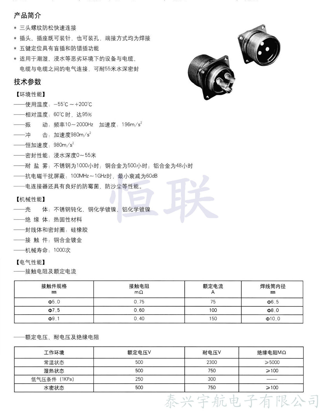 插頭、插座既可裝針,也可裝孔,端接方式均為焊接