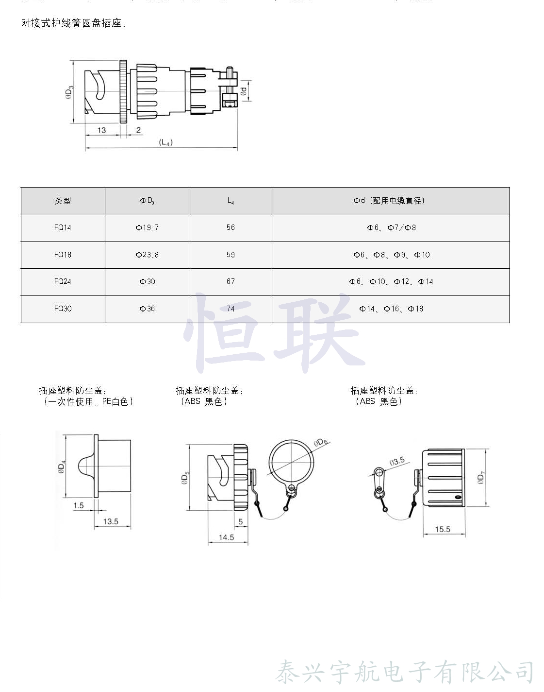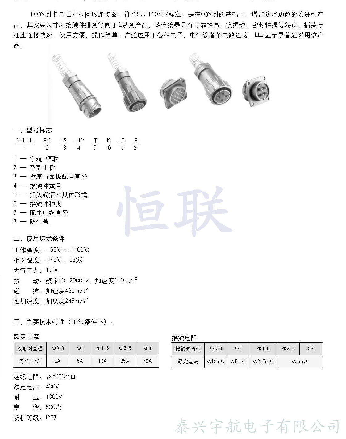 FQ系列卡口式防水圓形連接器,是在Q系列的基礎(chǔ)上,增加防水功能的改進(jìn)型產(chǎn)品,其中安裝尺寸和接觸件排列等同于Q系列產(chǎn)品。廣泛應(yīng)用于各種電子電氣設(shè)備之間的電路連接。該連接器具有可靠性高、抗震動、密封性強(qiáng)等特點(diǎn),插頭與插座連接快速,使用方便,操作簡單。其主要技術(shù)參數(shù)非等效采用DZQ/RE008-84標(biāo)準(zhǔn)